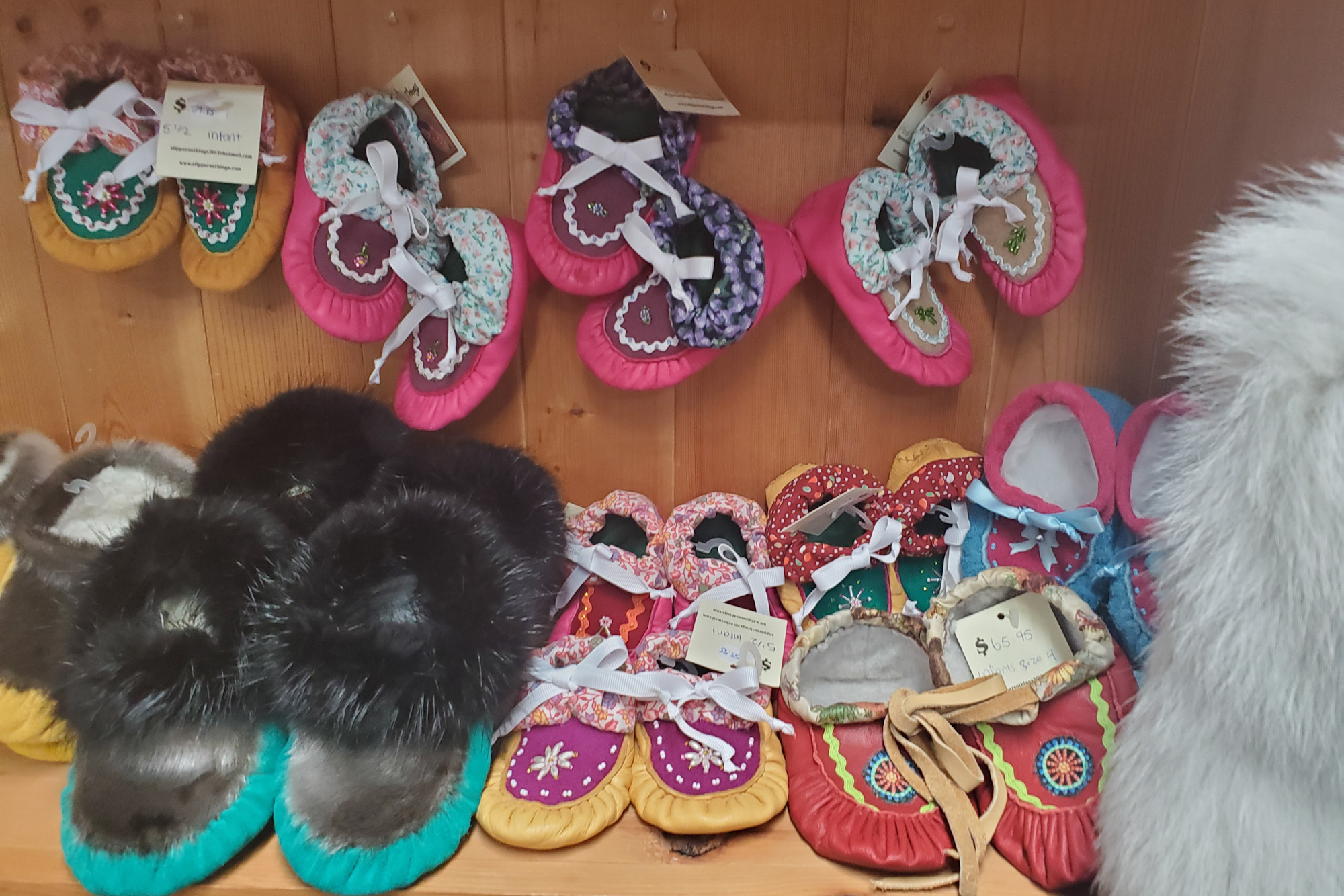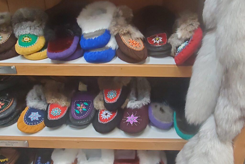 Step into the world of authentic Indigenous craftsmanship at Slippers N’ Things, now conveniently located in uptown Happy Valley-Goose Bay. This charming shop offers an exceptional selection of traditional handmade items, including slippers, mitts, hats, coats, knitted products, jewelry, prints, books, jams, chocolate, and unique souvenir items.